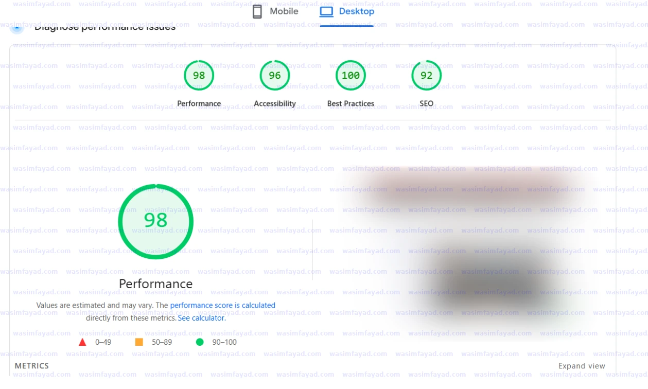 Desktop score: 98/100